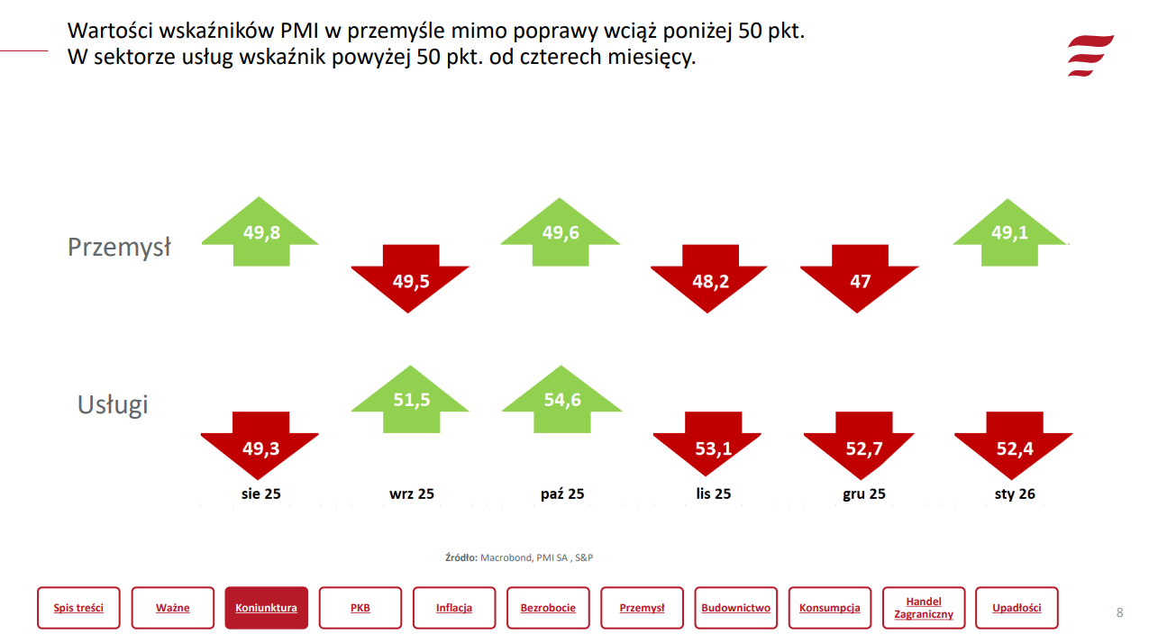 2. Przyspieszenie gospodarcze jest spodziewane w 2026 r. ze względu na wzrost popytu krajowego i rozpoczęcie procesów inwestycyjnych spowodowanych stymulacją rządu (infrastruktura, wojskowość).