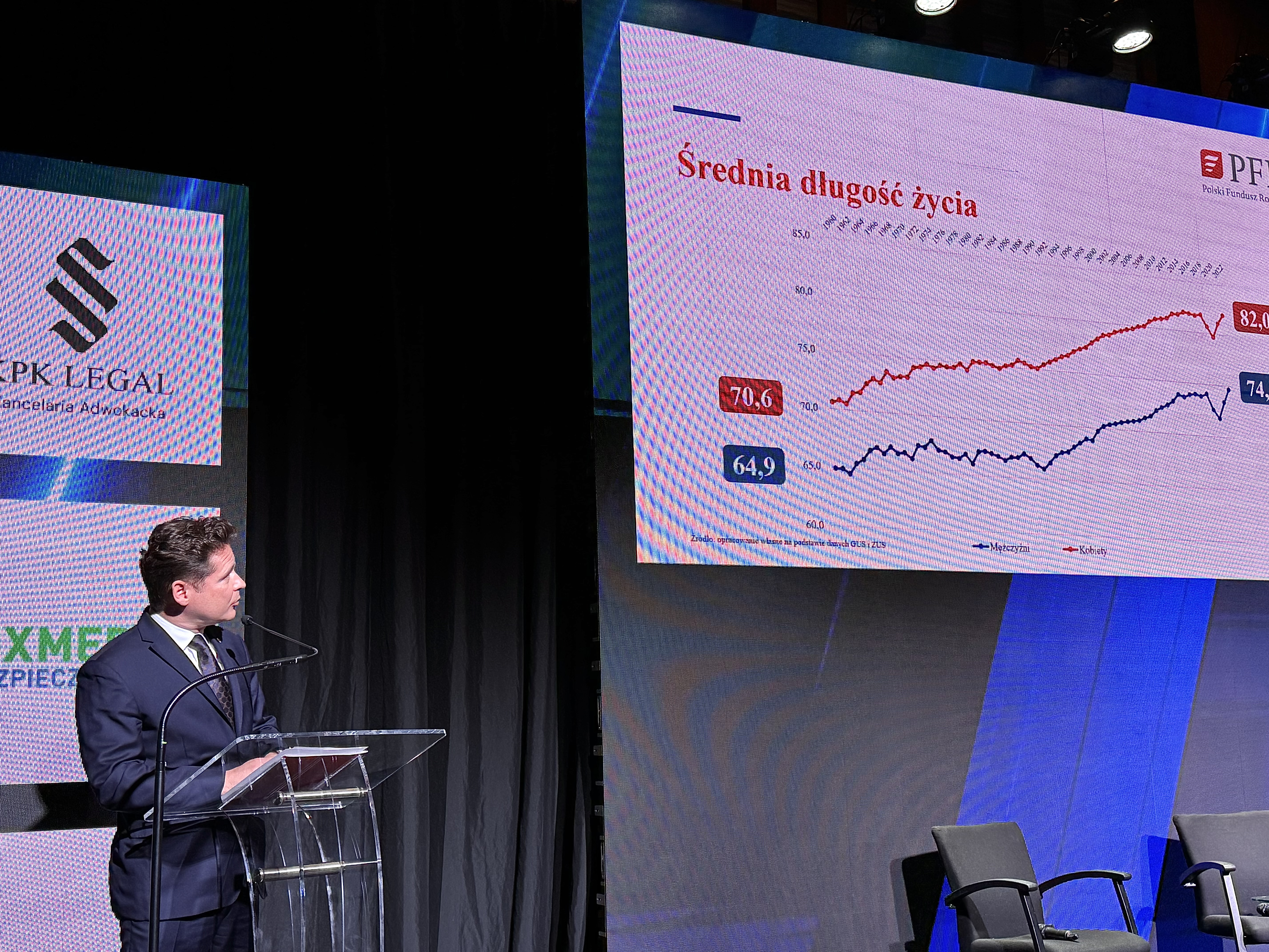 „Stopa zastąpienia w pokoleniu moich rodziców przekraczała 60%. Dziś oscyluje wokół 50%, a według prognoz może spaść nawet do około 25%. Każdy musi odpowiedzieć sobie na pytanie: czy wystarczy nam 25% ostatniej pensji?” – zaznaczył.