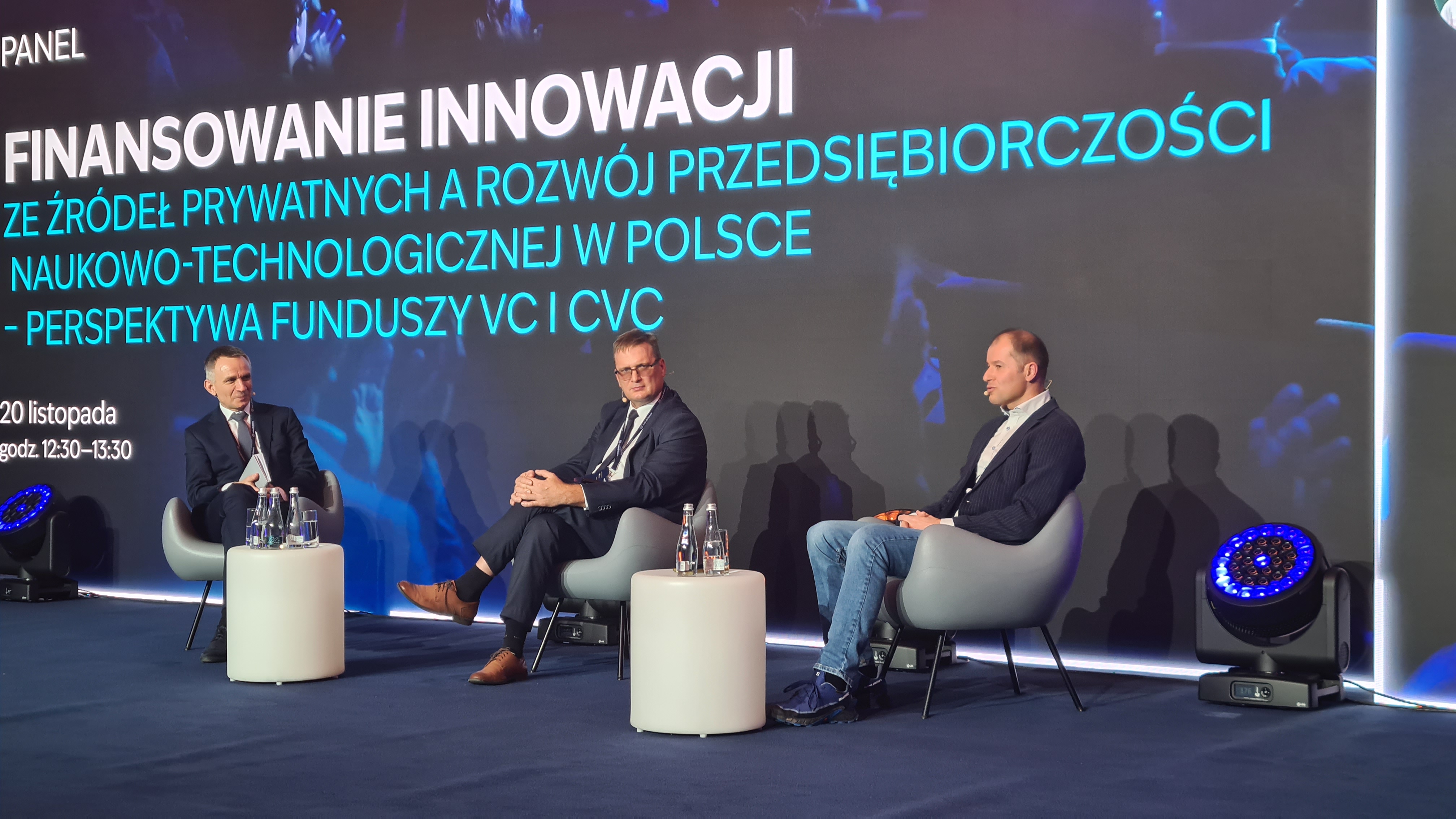 Panel „Finansowanie innowacji ze źródeł prywatnych a rozwój przedsiębiorczości naukowo-technologicznej w Polsce – perspektywa funduszy VC i CVC” poprowadził Piotr Kędra, Dyrektor Inwestycyjny w PFR Ventures. W dyskusji wzięli udział prof. dr hab. inż. Jarosław Mamala z Politechniki Opolskiej oraz Michał Olszewski, partner w Moves Capital, reprezentujący fundusze VC.
