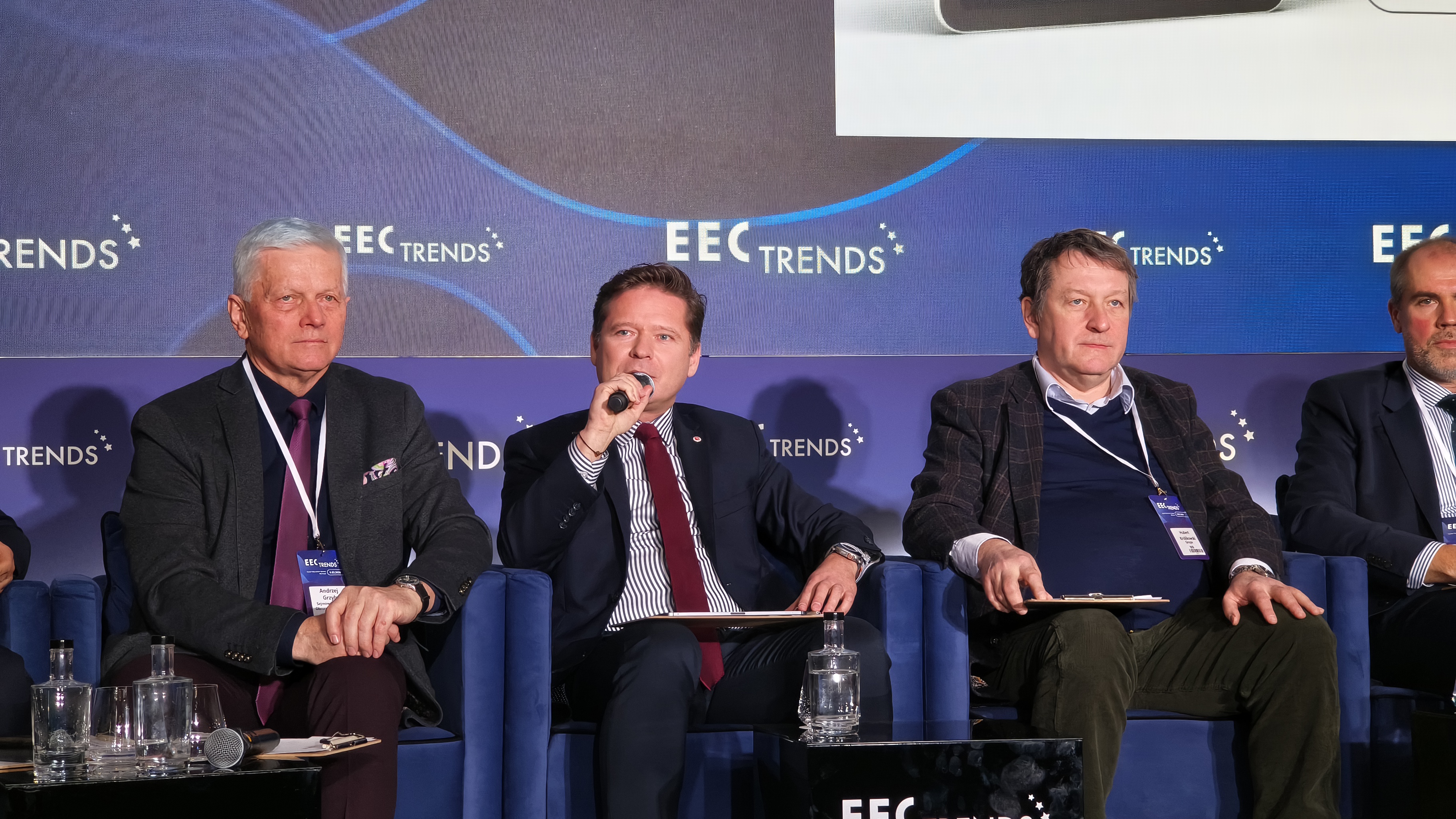 Panel dyskusyjny EEC Trends z udziałem prelegentów siedzących na scenie.