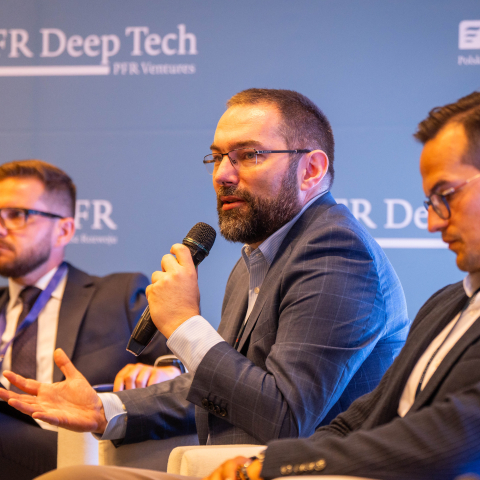 Temat sektora deep tech – technologii o wysokim stopniu zaawansowania, wymagających długiego horyzontu inwestycyjnego – został szeroko omówiony w panelu z udziałem przedstawicieli funduszy VC i świata nauki. Dyskusję moderował Mikołaj Raczyński, wiceprezes PFR, a Polski Fundusz Rozwoju był gospodarzem tej debaty.