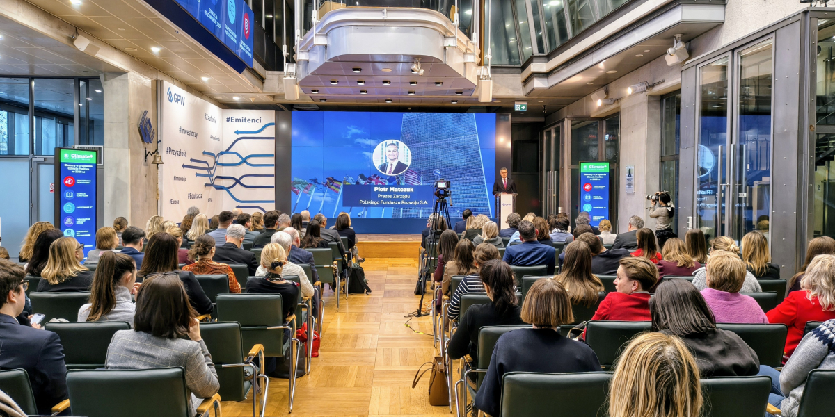 Ważnym wątkiem wystąpienia była strategia ESG. PFR w 2025 roku przyjął pierwszą kompleksową strategię zrównoważonego rozwoju, powołał stanowisko Chief Sustainability Officer oraz wdrożył raportowanie zgodne z dyrektywą CSRD, w tym pełne ujawnianie emisji CO₂.