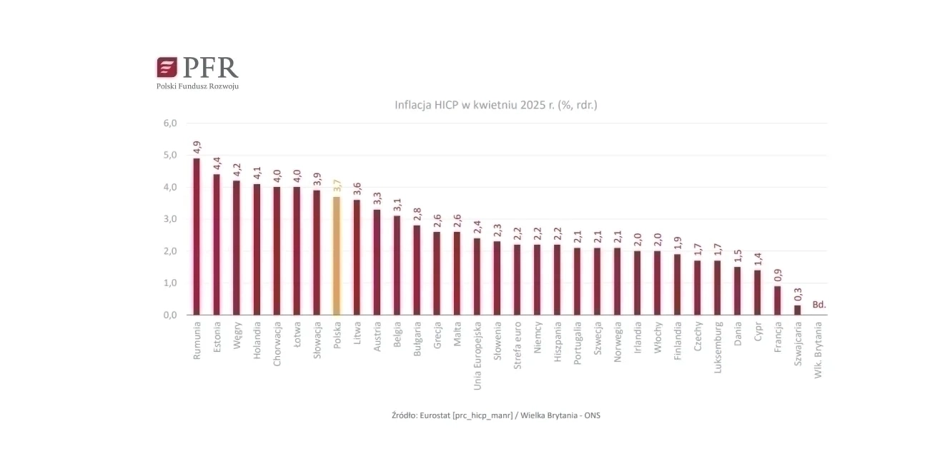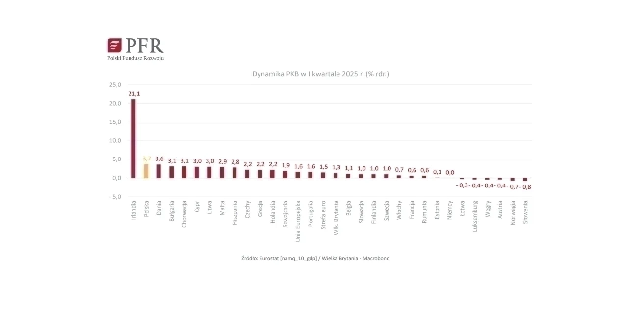 1. Wzrost PKB Polski w I kw. 2025 r. był drugim największym wzrostem spośród krajów UE i EFTA i wyniósł +3,7% rdr.