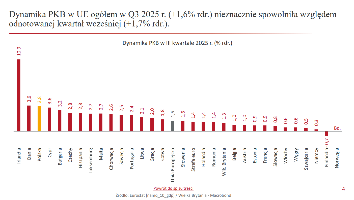Dynamika PKB Polski w Q3 2025 r. (+3,8% rdr.) była trzecią najwyższą spośród wszystkich krajów UE i EFTA.