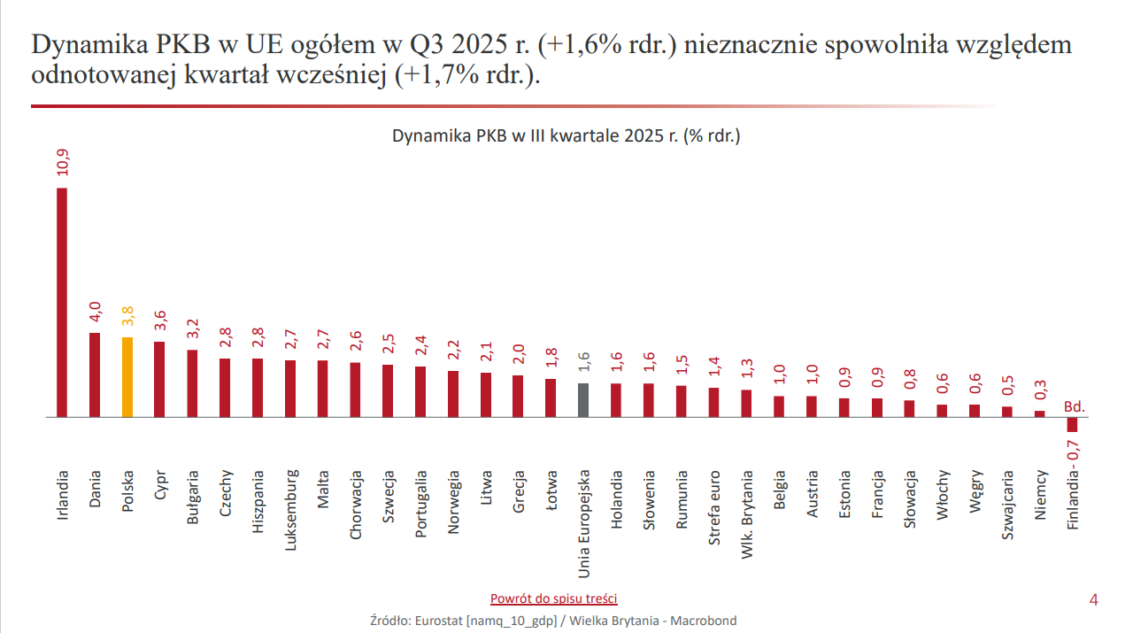 Krajem z najwyższym bezrobociem stała się Finlandia. Jeszcze w styczniu 2023 r. stopa bezrobocia w tym kraju wynosiła 7,2%. Dane za grudzień 2025 r. wskazują, że stopa bezrobocia wzrosła do 10,3%, tj. o +3,1 p. proc. W listopadzie 2025 r. odczyt wyniósł rekordowe 10,6%, co było najwyższym poziomem bezrobocia od stycznia 1999 roku. W wyniku załamania relacji handlowych z Rosją fińskie przedsiębiorstwa eksportowe poniosły znaczące straty, dodatkowo pogłębione przez późniejszy kryzys energetyczny