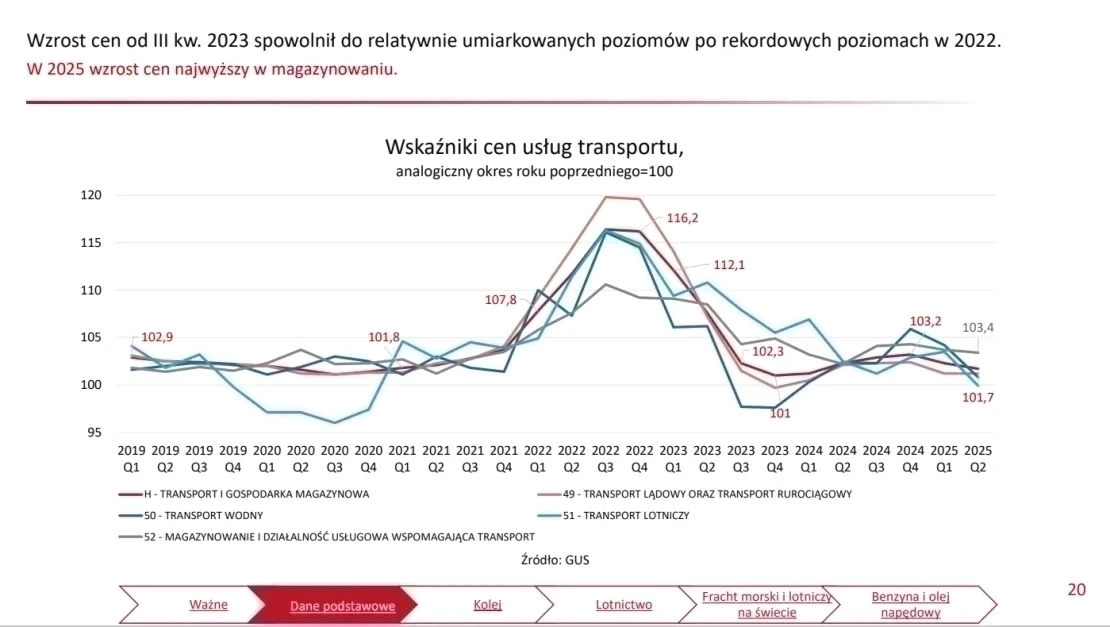 - w tym okresie ceny w magazynowaniu miały większa dynamikę wzrostu w porównaniu ze wszystkimi rodzajami transportu;