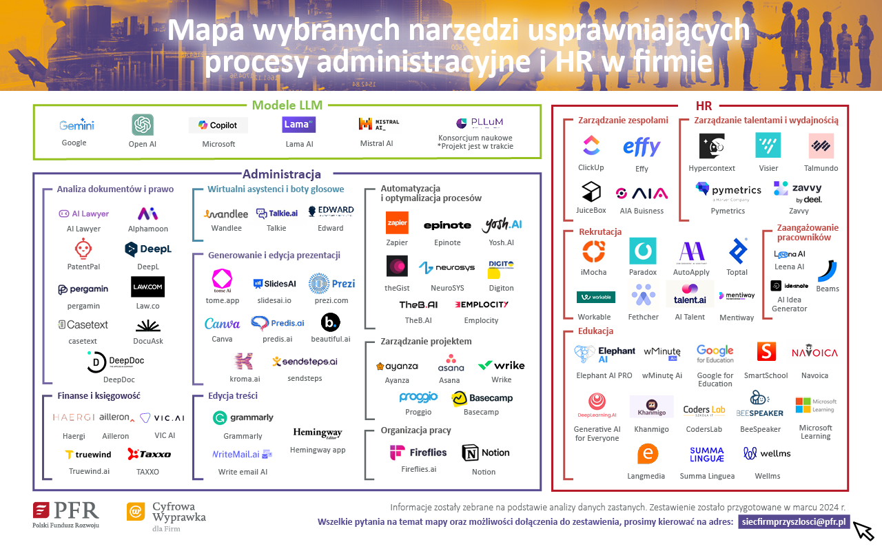 Mapa wybranych narzędzi AI w procesach administracyjnych i HR